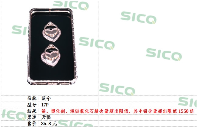 A phone case of Chinese brand Yuening contains 1,550 times greater than the limit of lead. /SICQ Photo