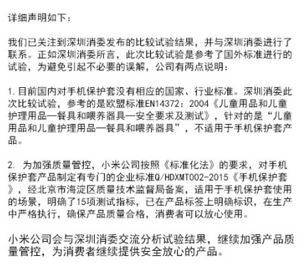 Xiaomi defended itself on Friday, saying that SICQ uses EN 14372 as a test standard, which is not applicable to phone covers. EN 14372 is a European standard focusing on child use and care. Furthermore, the company claimed that they have a specialized standard for its phone cases.