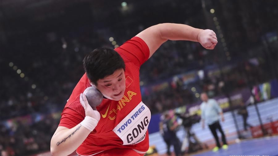 World champion Gong Lijiao captured China's first medal at the IAAF World Indoor Championships in Britain on Friday as she won the bronze in the women's shot put final.