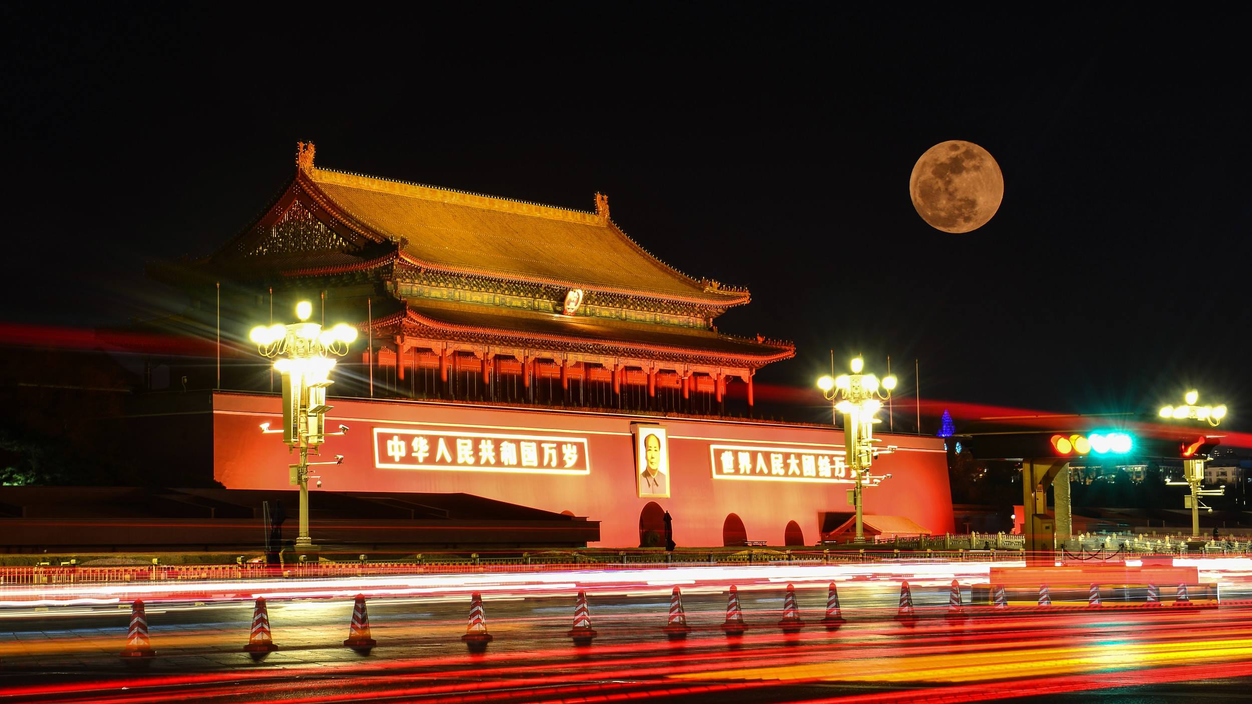 Photographers around the world were busy snapping their shutters to capture the rare, stunning view of the "super blue blood moon" on Wednesday night. A full moon was spotted high up in the sky above Tiananmen in Beijing. /VCG Photo