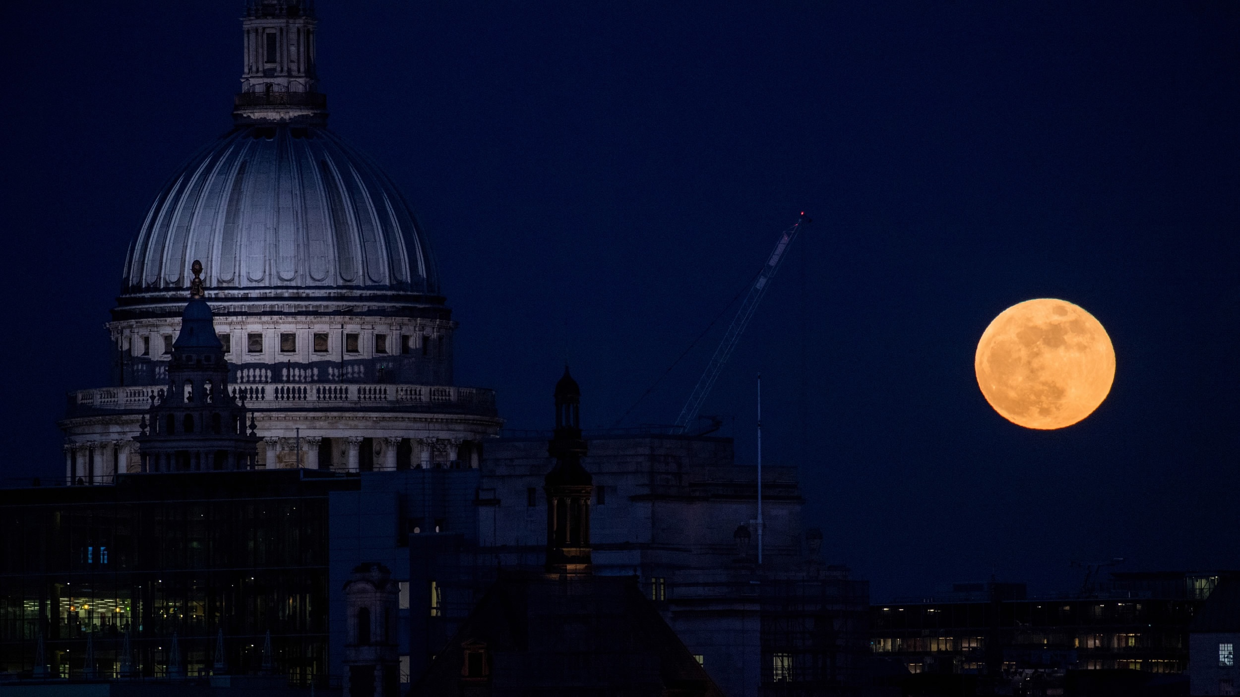 The supermoon rose behind St. Paul's Cathedral on Wednesday in London, UK. /VCG Photo