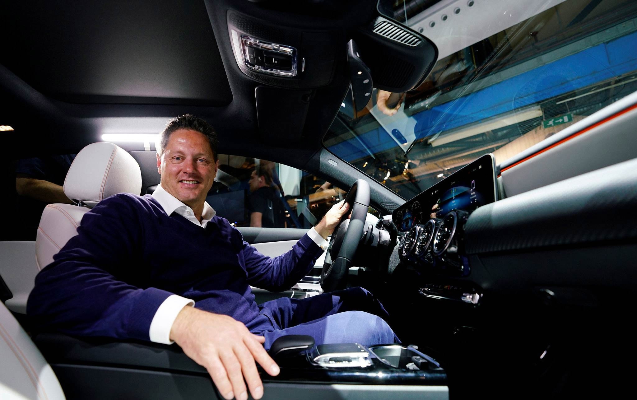 Gorden Wagener, Chief Design Officer for Daimler AG, sits in the new Daimler's Mercedes A-Class presented in Amsterdam, Netherlands, February 2, 2018. /VCG Photo