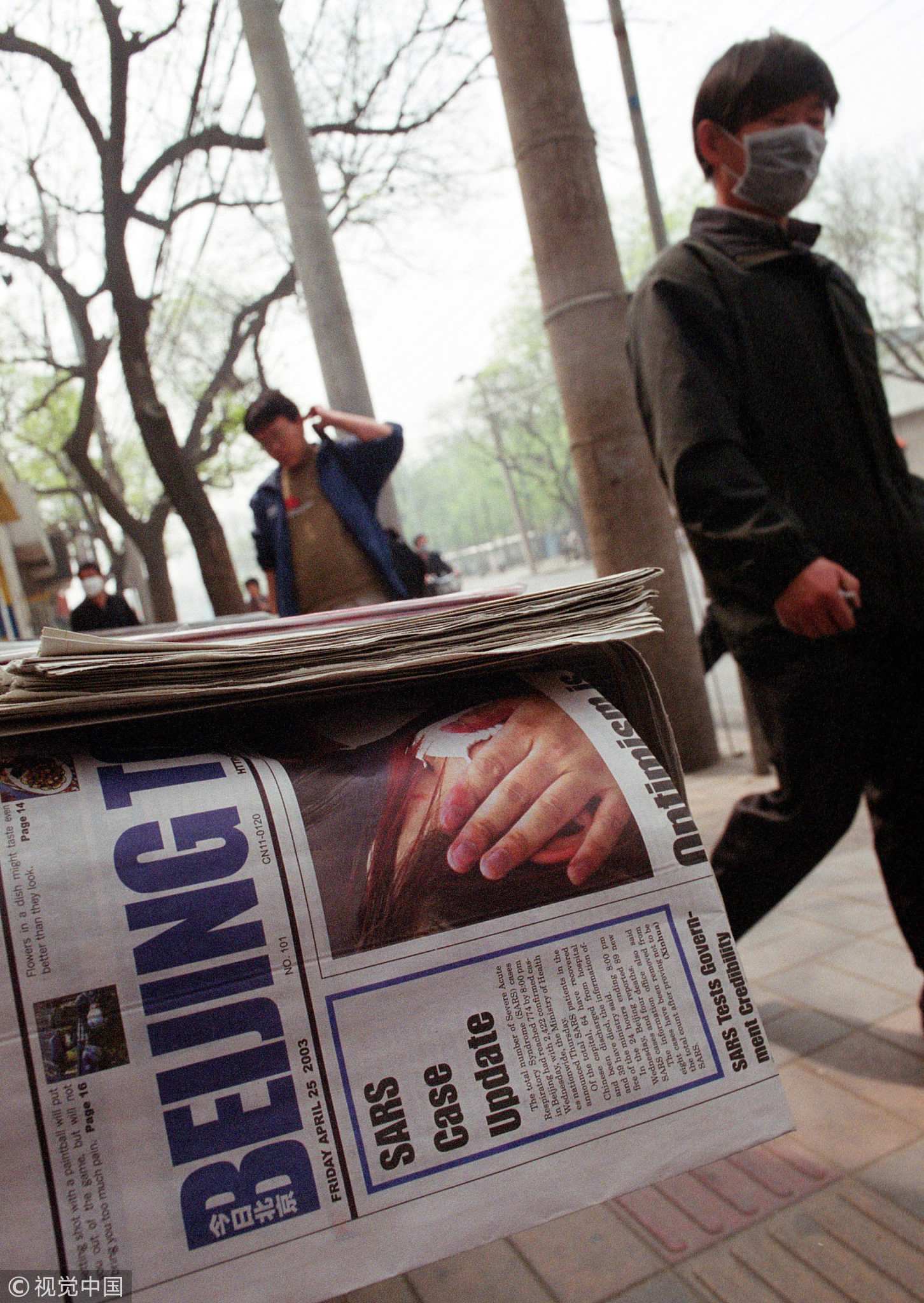 April 25, 2003: A kiosk with the latest headlines of the SARS crisis in Beijing, China. /VCG Photo