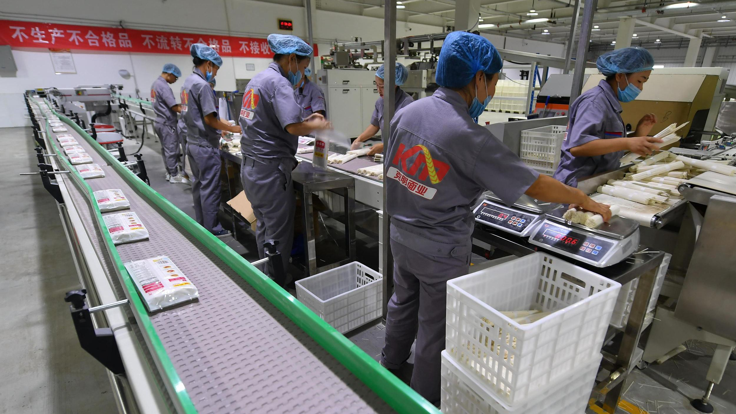 Production lines of Xinjiang Kemen Noodle Manufacturing Company, where output is being stepped up. The wheat flour is from Kazakhstan. Urumqi, Xinjiang, August 13, 2018. / VCG Photo