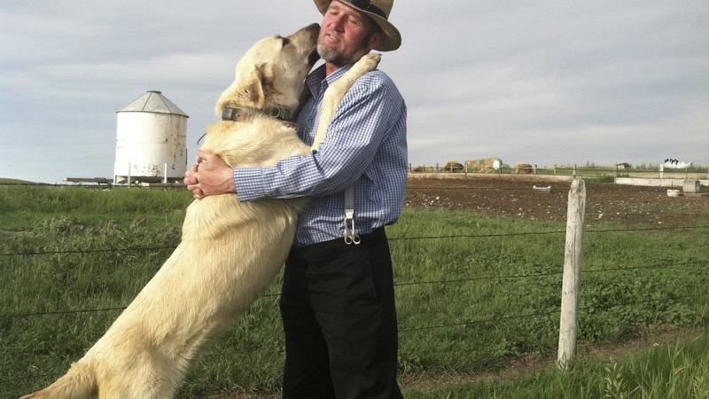 A Kangal dog walks with a heard of sheep at the Hutterite Rockport Colony near Pendroy, Mont. /AP Photo