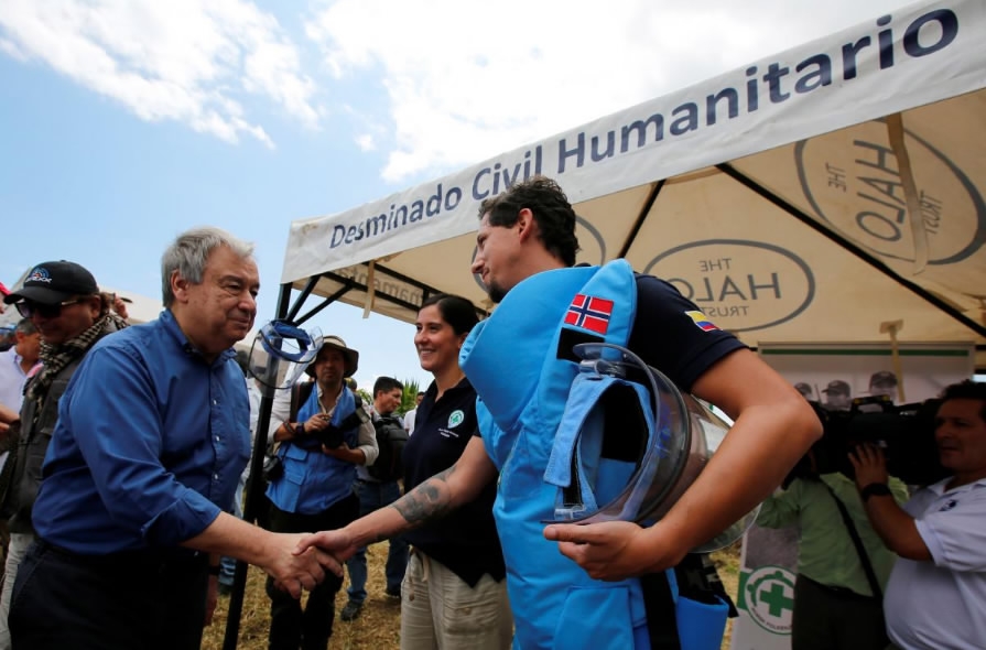 UN Secretary-General Antonio Guterres visits the reinsertion centers of former FARC rebels in Buenavista, Colombia on January 14, 2018. /Reuters Photo
