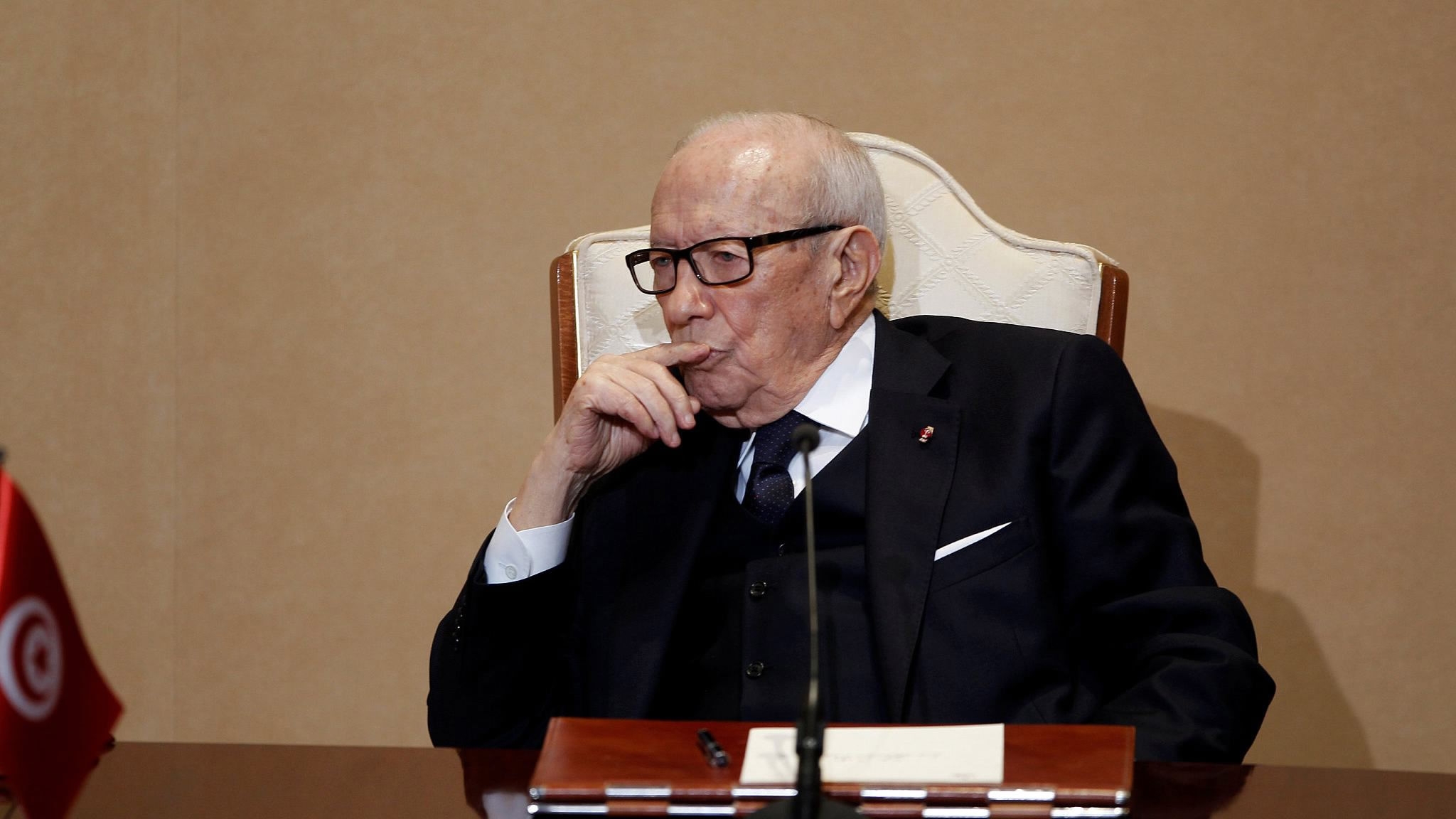 Tunisian President Beji Caid Essebsi attends a news conference with French President Emmanuel Macron in Tunis, Tunisia, Jan. 31, 2018. /VCG Photo