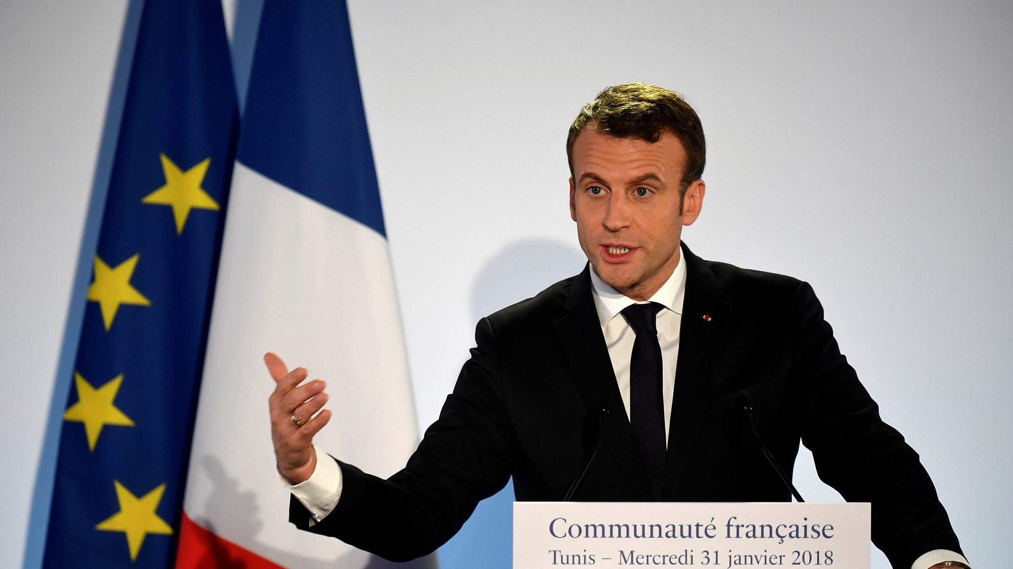 French President Emmanuel Macron delivers a speech to members of the French community in Tunis, Tunisia, Jan. 31, 2018. /AFP Photo