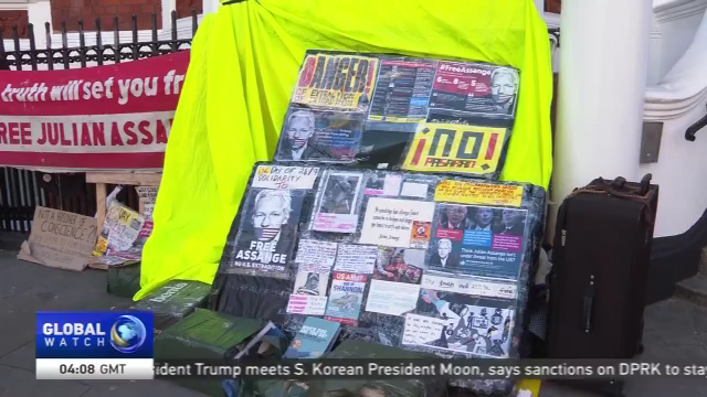 JULIET MANN LONDON "The Ecuadorian president Lenin Moreno said Assange had displayed discourteous and aggressive behaviour. Moreno said he had blocked security cameras and mistreated guards. Almost seven years is a long time to be restricted to moving around a handful of rooms and this is the balcony where Assange would occasionally take air and address his supporters. Several doctors expressed concern about his physical and mental health earlier this year."