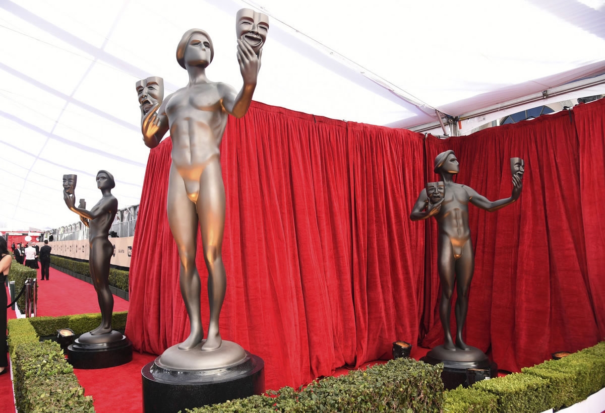 SAG statues appear on the red carpet at the 24th annual Screen Actors Guild Awards at the Shrine Auditorium & Expo Hall on Sunday, Jan. 21, 2018, in Los Angeles. /AP Photo