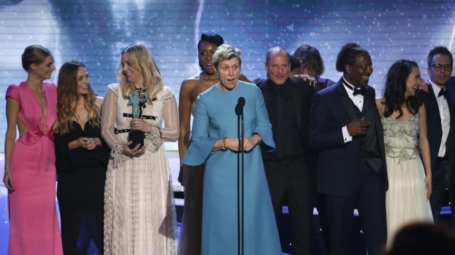 "Four Billboards" took four nods in three categories - best ensemble cast, best lead actress (Frances McDormand), and best supporting actor (Woody Harrelson and Sam Rockwell).