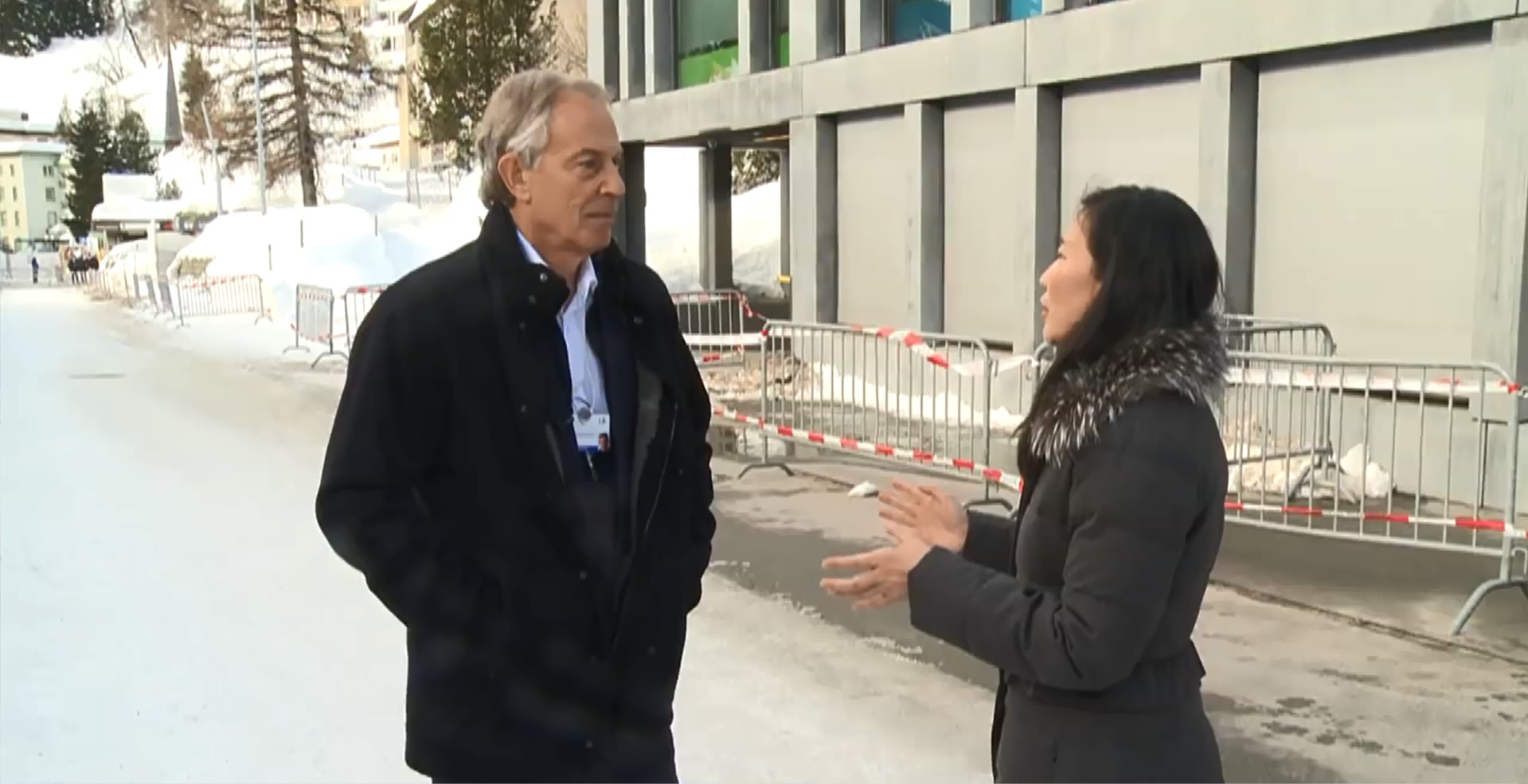 The former UK prime minister Tony Blair talked to a CGTN reporter in Davos, Switzerland. /CGTN Photo