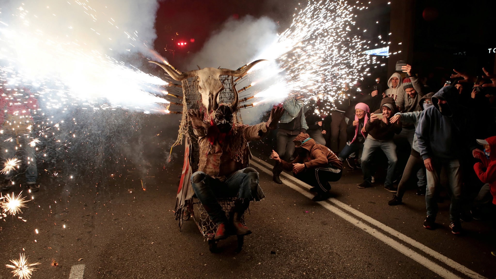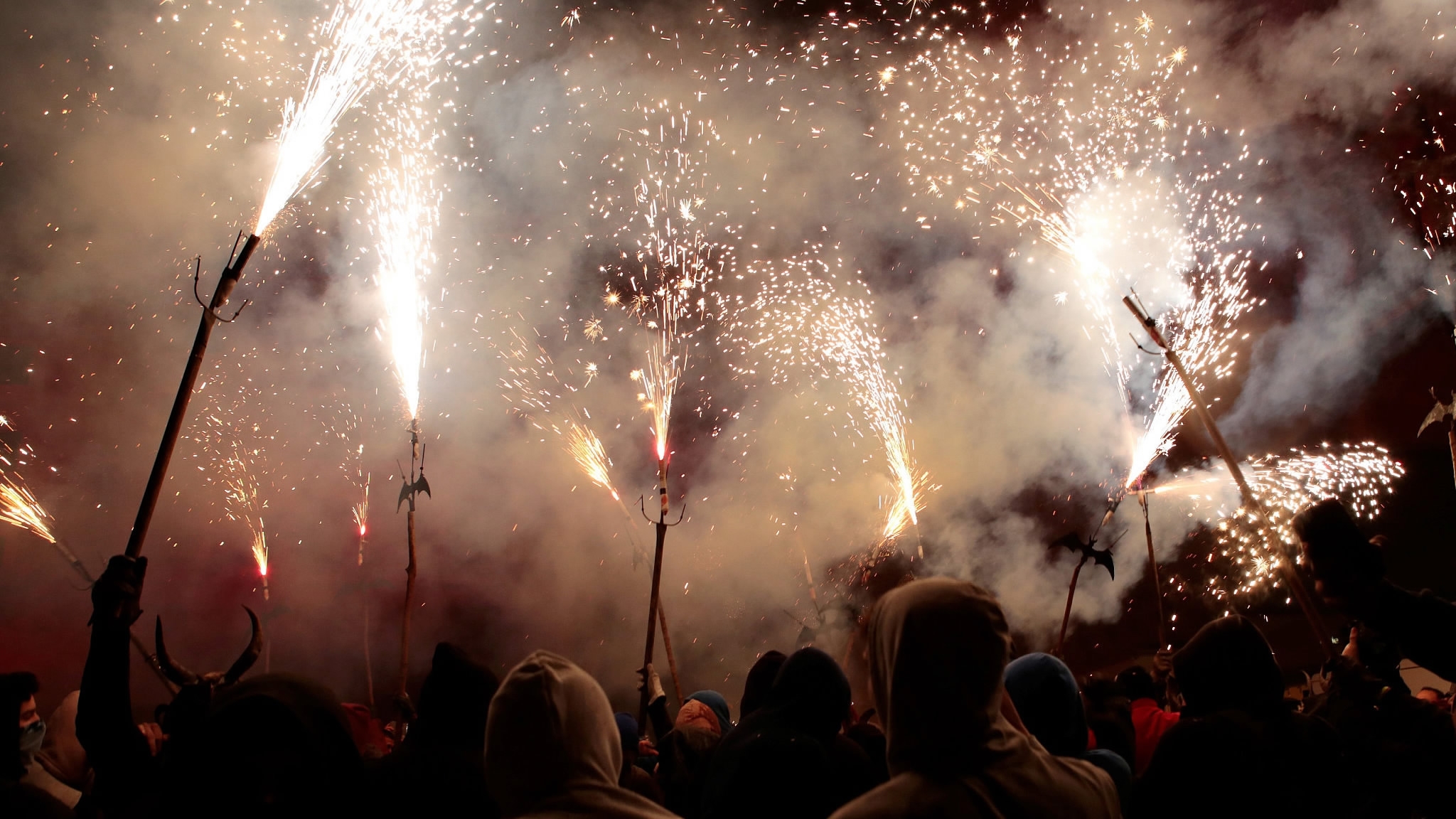 The “Correfocs” is highly colorful but can be very dangerous because of sparks flying through the air close to spectators. People usually come prepared with clothing to protect themselves from potential burns. /VCG Photo
