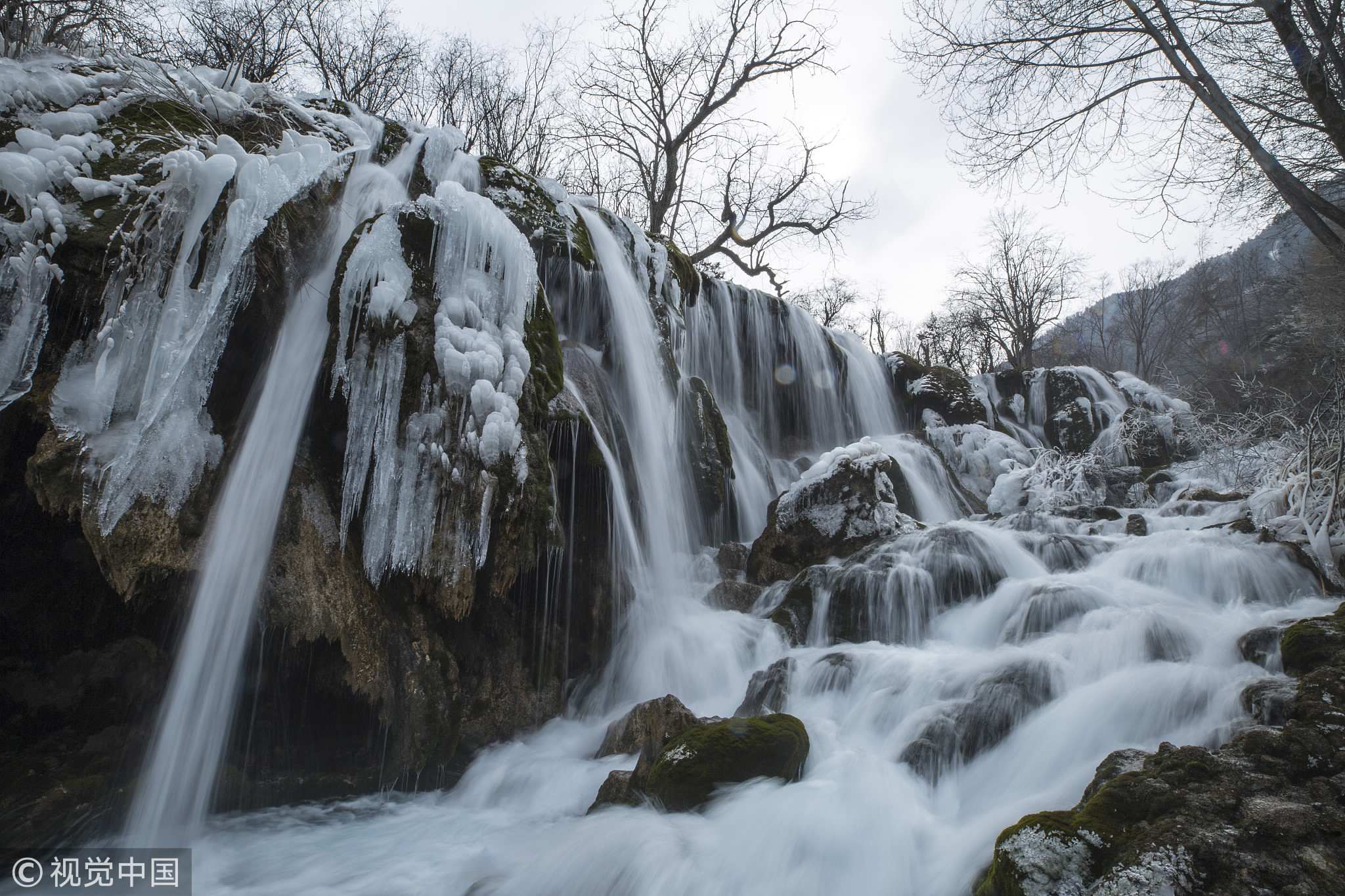 Rare frozen waterfalls and blue ice are seen in Jiuzhaigou, a famous scenic spot in southwest China’s Sichuan Province in recent days thanks to persistent low temperatures. /CFP Photo