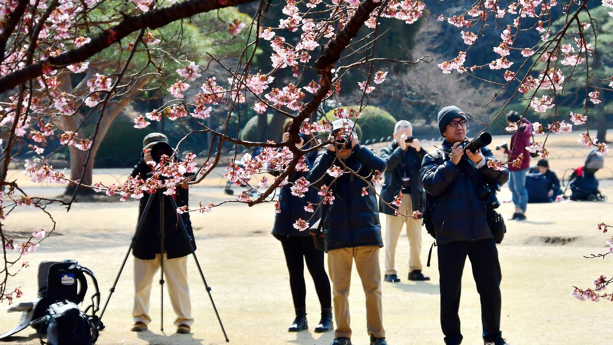 Blooming Sakura, Japan's unofficial national flower, can already be spotted in Tokyo’s Shinjuku Gyoen National Garden, though the country’s weather authority forecasts that blooming season in Tokyo will fall on March 24. /VCG Photo