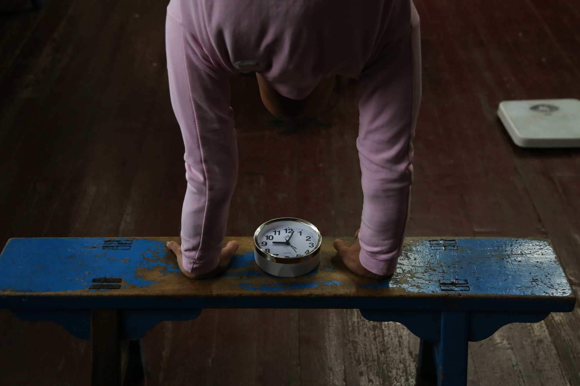 A Le, one of the seven children, first set foot in the acrobatics ring at the age of seven. This year is his 10th at the troupe. In the first two years, A Le went through a series of exercises fundamental for an acrobatic performer. Leg presses, handstands, leg splits and somersaults dominated his days. He was paid 2,500 yuan (around 363 US dollars) a month as a reward.