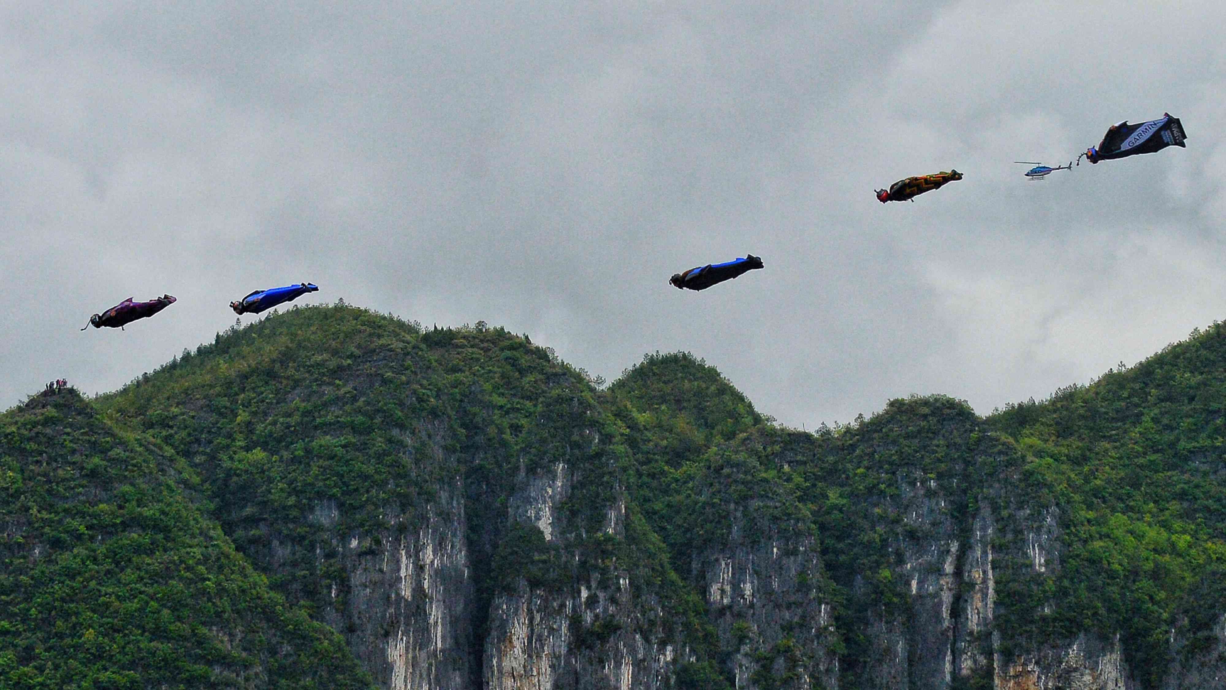 Six wingsuit pilots took a leap from two helicopters 1,800 meters up to complete a flying challenge in Yunyang County of southwest China’s Chongqing Municipality last Saturday. They created numerous formations during their descent. The pilots flew over the clouds at 200 kilometers per hour. Take a look!