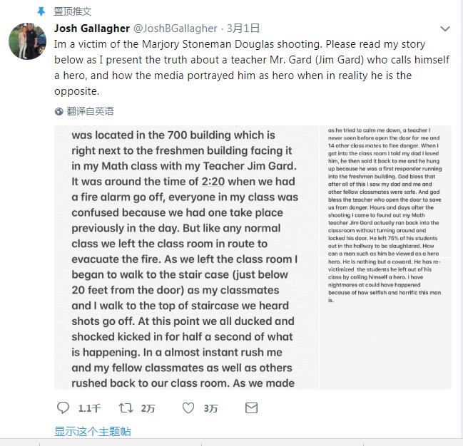 At least two of Gard’s students contested his claims on their Twitter accounts, saying that the teacher is the opposite of a hero.