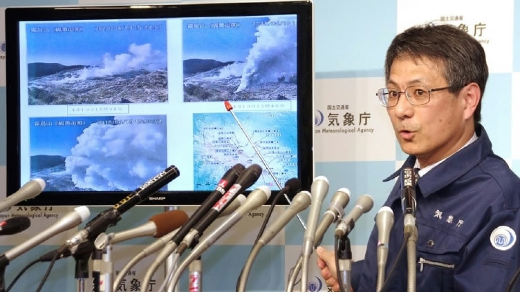 In a televised press conference, he warned residents in the area to stay away from the mountain, part of the Mount Kirishima group of volcanoes, as major ash deposits spread from the crater.
