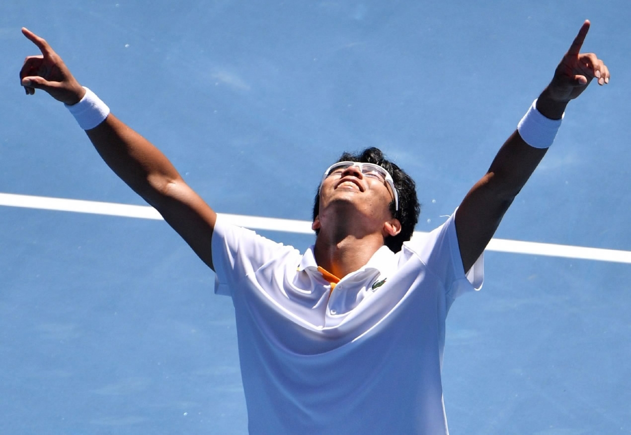 Chung Hyeon celebrates his victory to reach the semi-finals. /VCG Photo