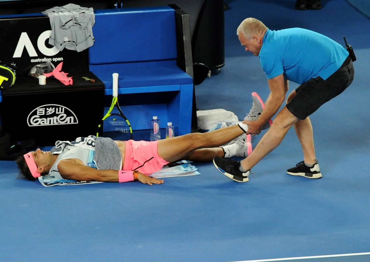 Rafael Nadal takes a medical suspension in quarterfinal against Marin Cilic. /VCG Photo