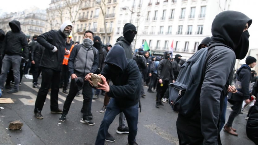 While the vast majority of around 180 demonstrations nationwide were peaceful, scuffles erupted between police and hooded young protesters in Paris and the western city of Nantes, where security forces fired tear gas and water cannon.