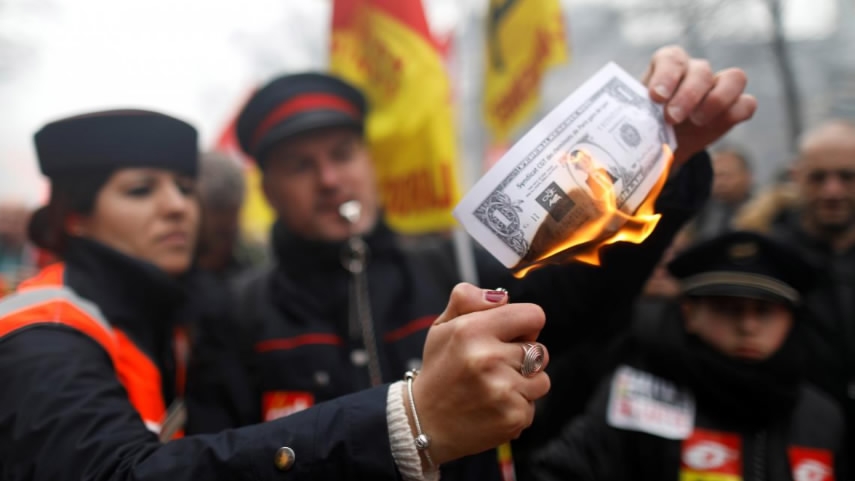 Railway workers and protesters attend a demonstration during a national day of strikes and protests against reforms in Paris, France, March 22, 2018./ Reuters Photo