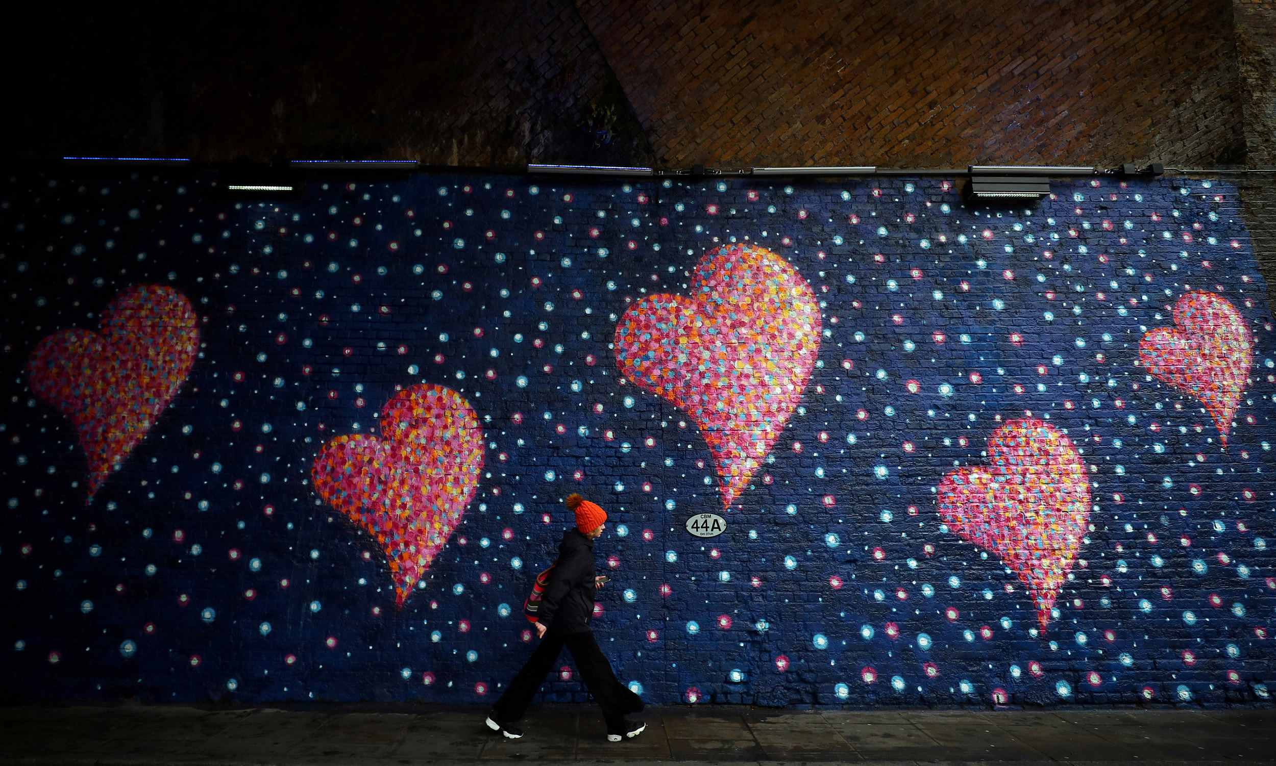 A woman walks past a mural commemorating the victims of the London Bridge attack in June 2017. /VCG Photo