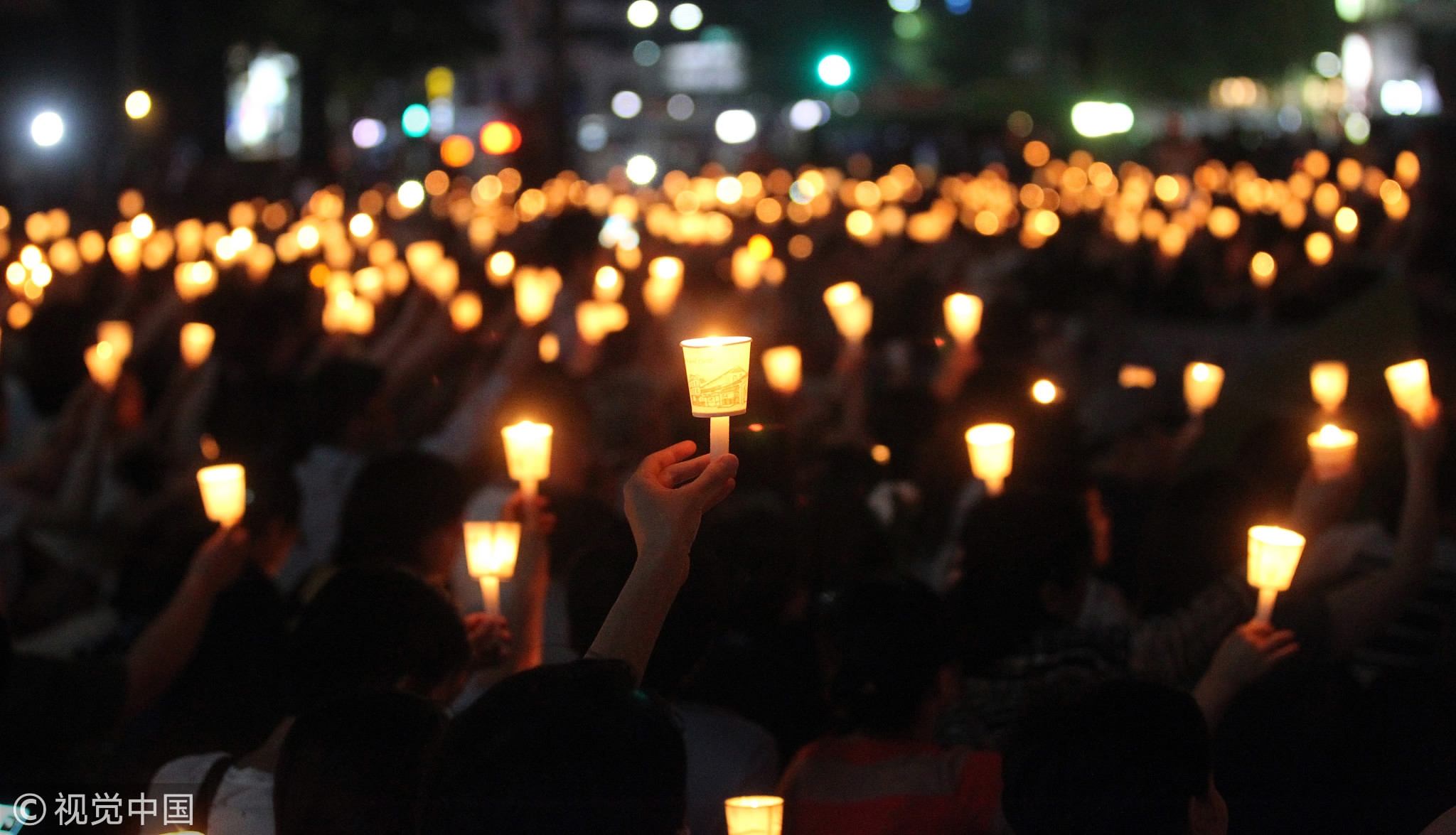 May 31, 2014: Candles were lit up to demand truth behind Sewol ferry sinking disaster that claimed over 300 lives one month ago, in Seoul, South Korea. /VCG Photo