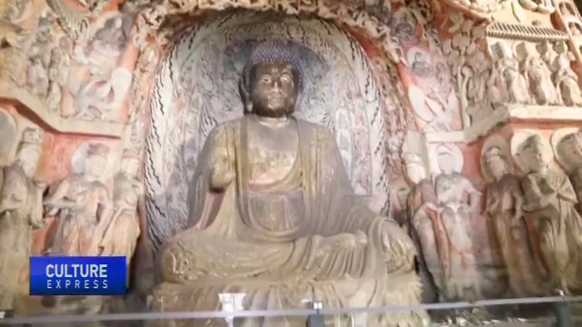 A ten-meter high Buddha sculpture. What you see is a one-to-one replica of the third cave of the Yungang Grottoes from northern China's Shanxi Province. And it was all printed using 3D technology and exhibited in the city of Qingdao in 2017. And this is what it's like in the real cave.